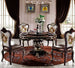 This Carving Luxury Royal Round Dining Table Set is a stunning addition to any home. The table is made of solid wood and features a beautiful carved design. The chairs are upholstered in a luxurious fabric and have comfortable padded seats. This set is perfect for entertaining guests or simply enjoying a meal with family and friends.