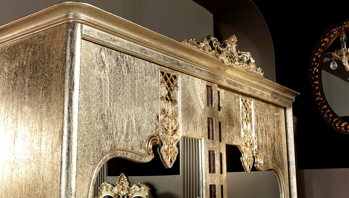 Crafted by the hands of skilled artisans, this wardrobe stands as a testament to the fusion of art and functionality. Each stroke of the artisan's chisel brings forth intricate patterns and motifs, reminiscent of a bygone era of regality. The gold color finish envelops the wardrobe, casting a radiant glow that instantly mesmerizes and transforms any space it graces.