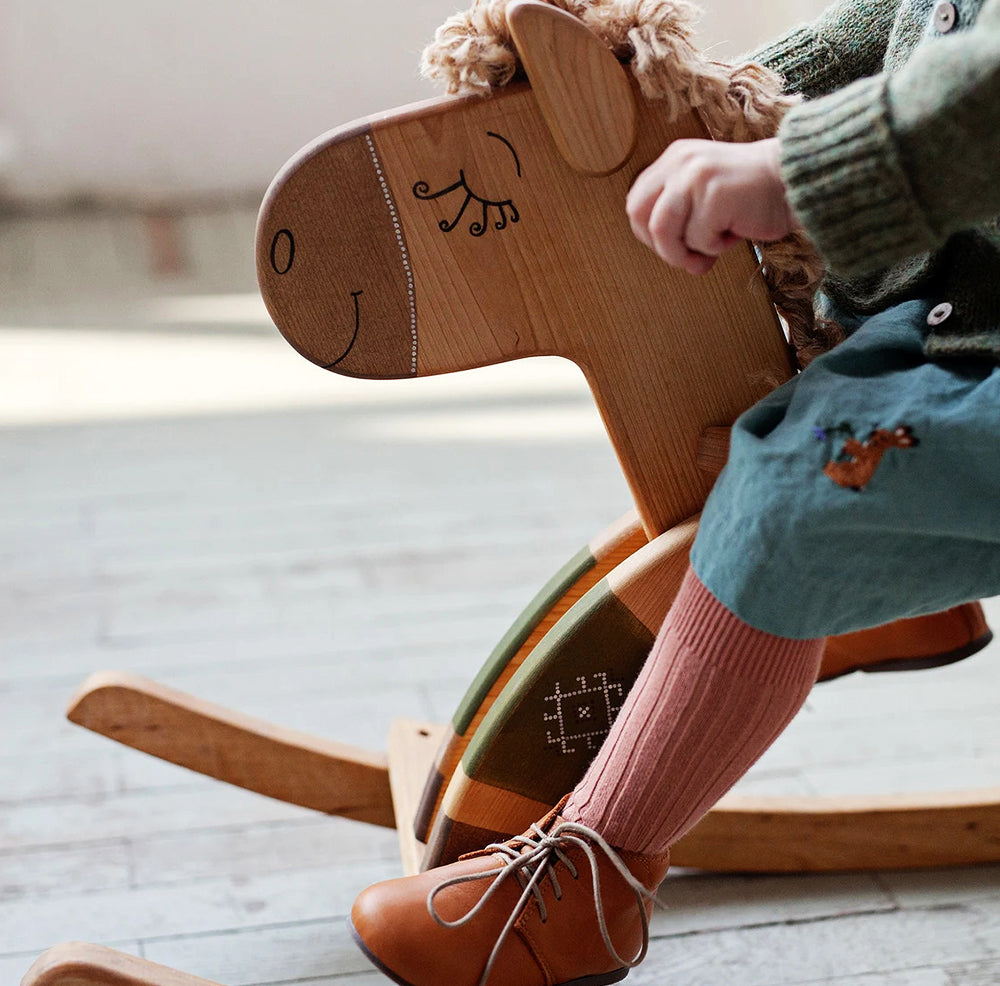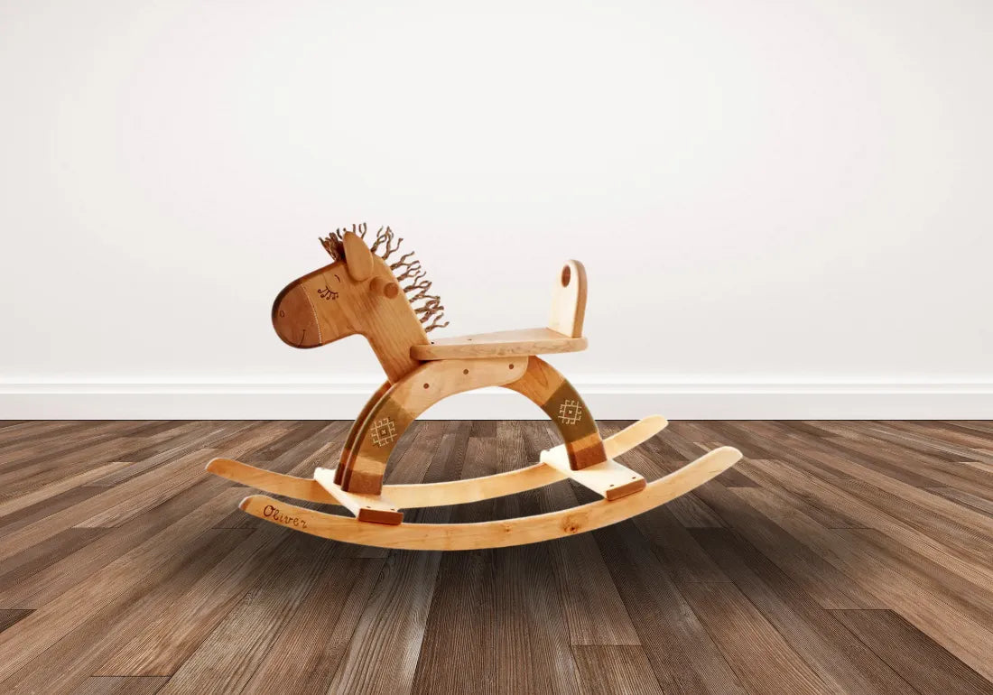 What sets our rocking horse apart is the option to personalize it, making it truly one-of-a-kind. Your child's name elegantly embroidered on the saddle adds a touch of individuality and creates a treasured keepsake for years to come. Imagine the delight on their face as they discover their very own special horse, ready to embark on countless imaginative adventures.