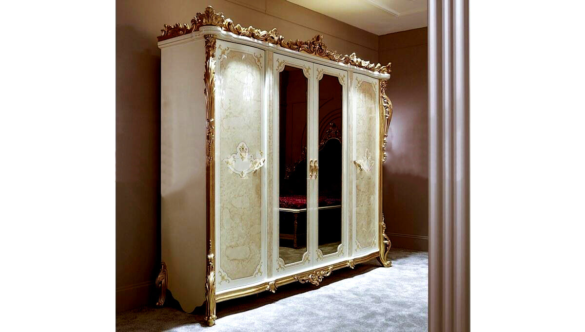 Every inch of this remarkable wardrobe exudes a golden radiance, capturing the essence of splendor and refinement. The meticulous hand-carved details, delicately etched into the finest wood, showcase the virtuosity of master artisans who have poured their passion into creating this treasure.