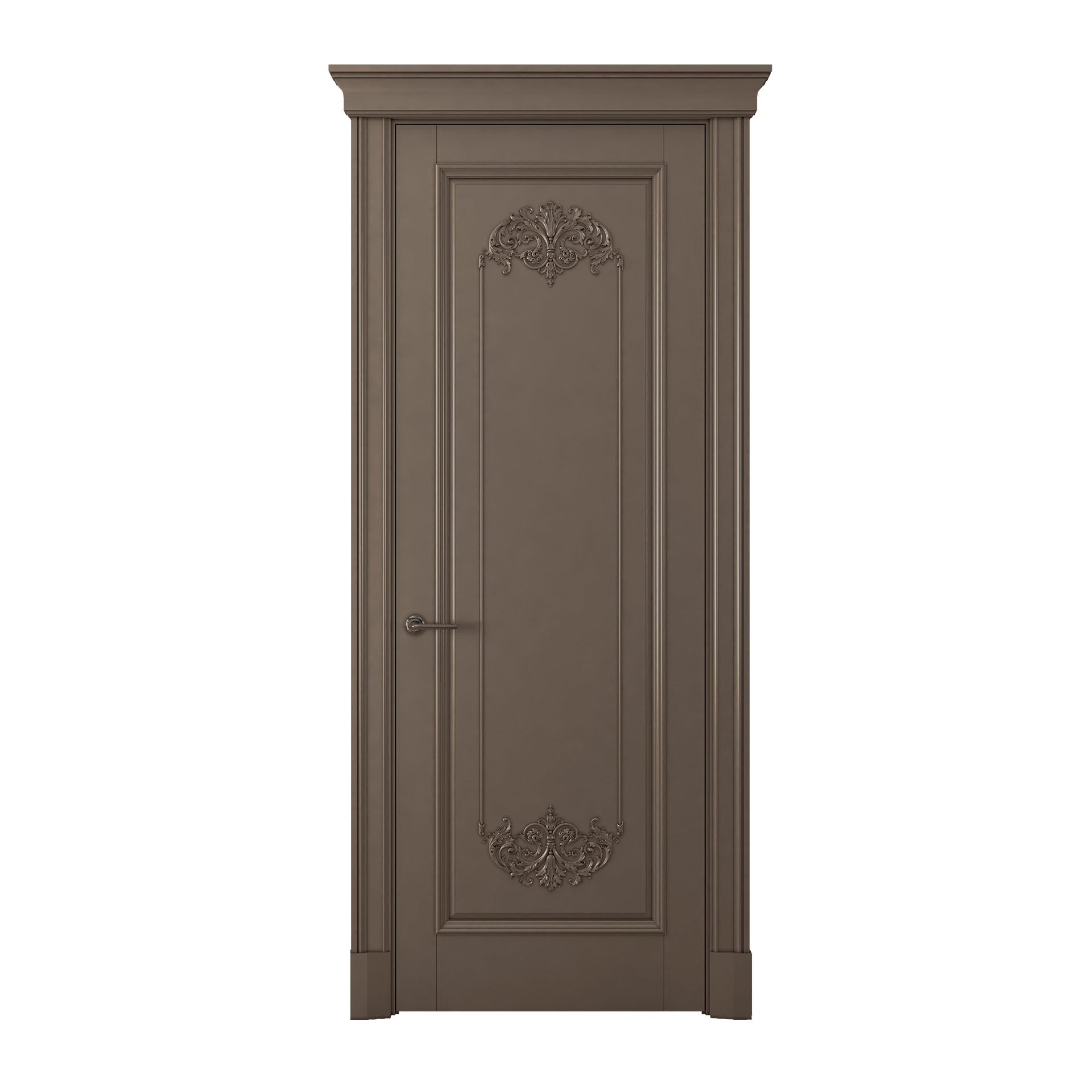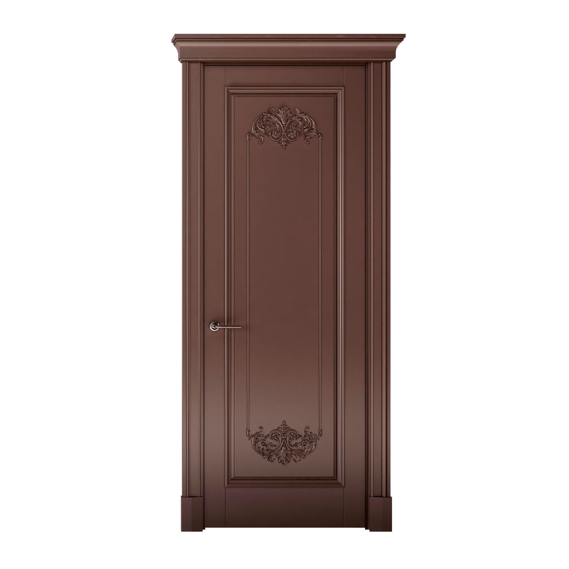 From the moment your gaze meets its surface, the door's splendor is unmistakable. The wood itself, carefully selected for its unrivaled beauty, is a canvas that tells stories in every grain. The hues are rich and deep, reminiscent of aged wine, inviting you to run your fingers over its surface to experience the tactile luxury that only the finest wood can offer.