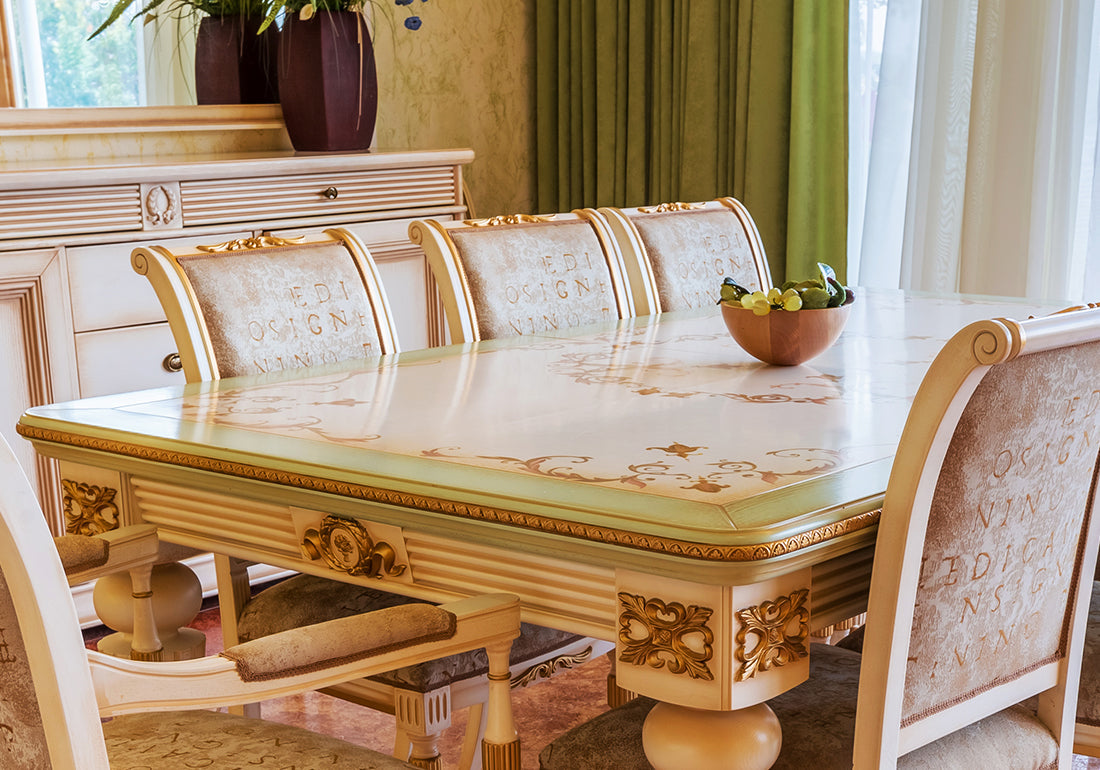 With its classic European silhouette, medium hand-carved motifs, and richly upholstered high-back chairs, it promises both comfort and sophistication. Whether hosting intimate family dinners or grand gatherings, this set becomes the focal point of your space, offering versatile seating configurations in 4, 6, or 8-seater options.