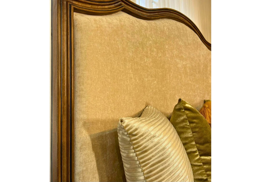 The bed itself is a work of art, featuring intricate handcrafted details and a sturdy frame that ensures both style and durability. The set is completed with matching nightstands and a dresser, each reflecting the same level of meticulous craftsmanship. With its European flair and timeless design, this bed set offers not only a comfortable place to rest but also a striking centerpiece for your bedroom, making it a true testament to the beauty of handcrafted furniture and a source of pride for any homeowner.