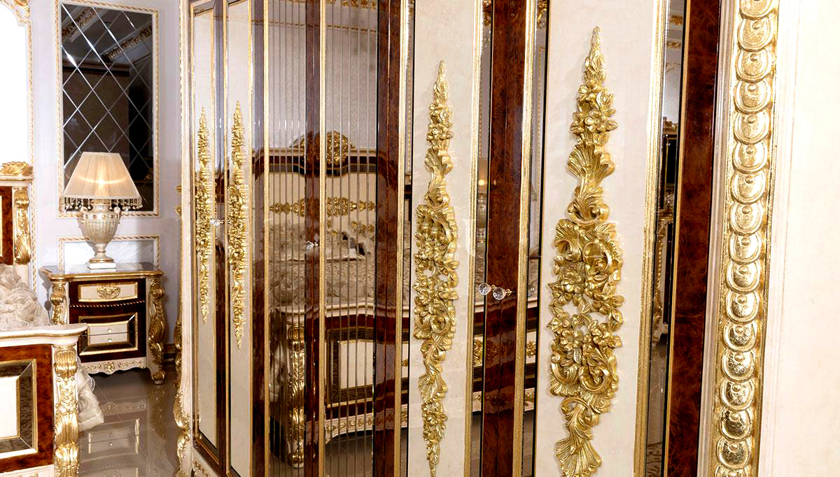 The wardrobe features a harmonious blend of ornate motifs and delicate patterns, skillfully carved into the finest wood. These intricate designs, inspired by classical European aesthetics, bestow an aura of grandeur and prestige upon this magnificent piece of furniture.