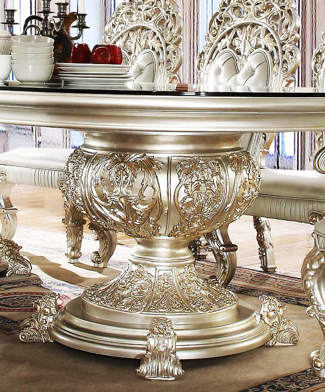 Indulge in a royal dining experience with the Victorian Style Formal Dining Room Set. This set exudes opulence with its ornate carvings and meticulous attention to detail. European design elements are incorporated to create an attractive framework that exudes luxury from every angle.