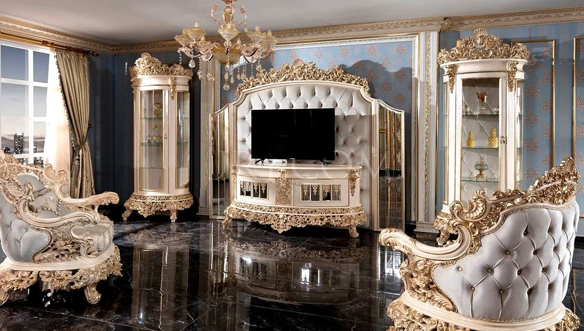 This cream-colored wooden carved TV cabinet is the perfect addition to any living room seeking a touch of classic elegance. The cabinet features intricately carved details on its doors and edges, adding a touch of sophistication to your space.