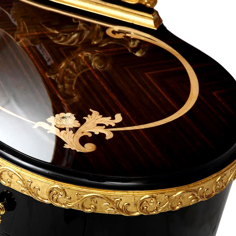 Introducing our exquisite Black French Style Hand Carved Dressing Table, a true embodiment of opulence and sophistication. This extraordinary piece of furniture seamlessly blends classic French design elements with contemporary luxury, resulting in a statement piece that will elevate any space.