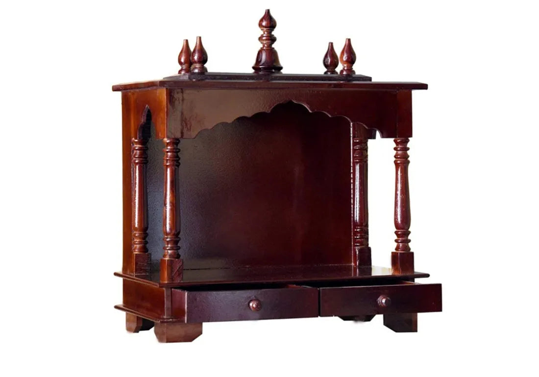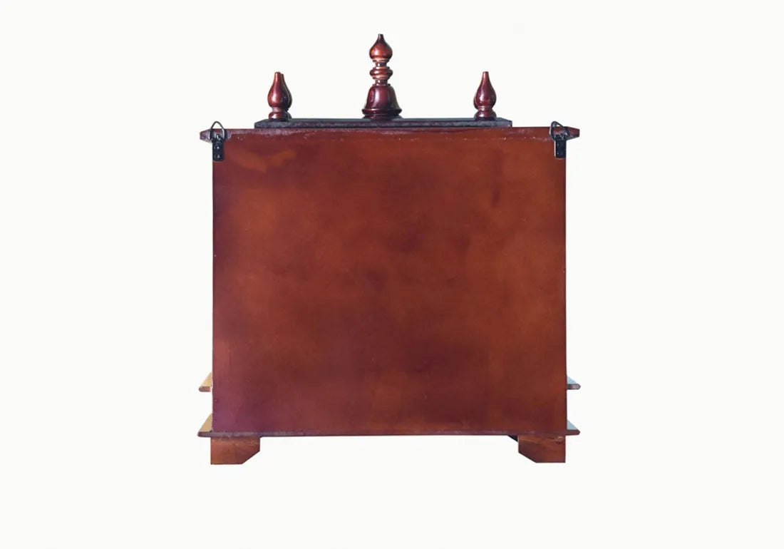Crafted from the finest teak wood, this temple boasts a rich, golden-brown hue and distinctive grain patterns that exude natural warmth and elegance. The hand-carved motifs and designs on the temple's exterior are intricate and exquisite, drawing inspiration from traditional temple architecture. These elaborate carvings, often featuring divine figures and sacred symbols, create an atmosphere of sanctity and reverence, making the temple a divine sanctuary within your home.