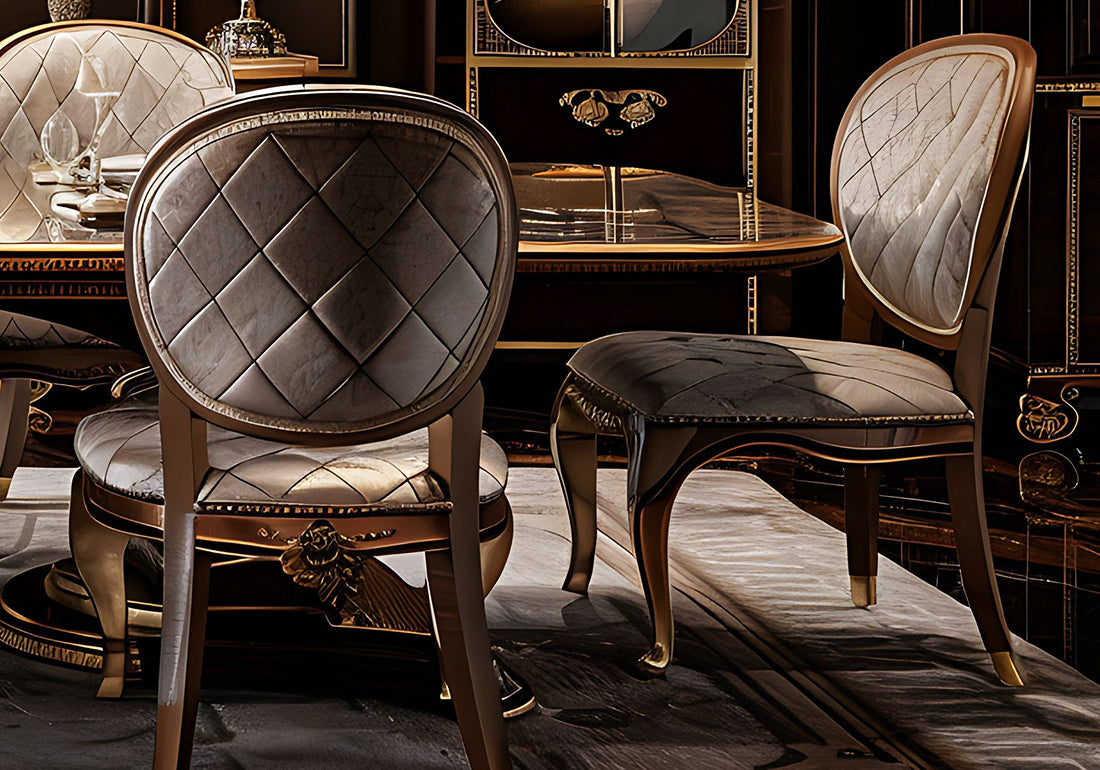 The dining table’s smooth contours and medium-depth carved motifs evoke understated grandeur, while the tufted, cushioned chairs provide unmatched comfort and sophistication. Whether it's a cozy dinner for four or a grand feast for eight, this set adapts beautifully to every setting through variant seating options.