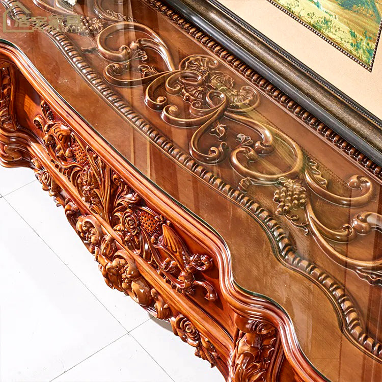Introducing our beautiful hand-carved TV cabinet, fit for royalty and designed for those with a penchant for luxury. Meticulously crafted by skilled artisans, this majestic piece combines timeless elegance with opulent detailing, showcasing the finest craftsmanship. Each intricate carving is a testament to our commitment to creating heirloom-quality furniture. Made from the finest materials, this TV cabinet exudes regal charm and transforms any living space into a palace-worthy setting. It's spacious compartments and intelligent design effortlessly accommodate your entertainment needs while adding a touch of grandeur to your home. Elevate your viewing experience and indulge in refinement with our royal and luxury hand-carved TV cabinet.