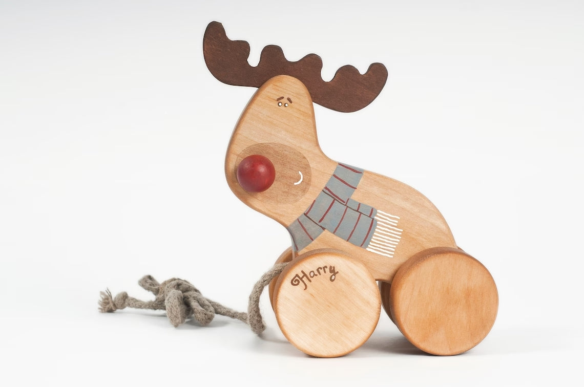 Celebrate the magic of the holiday season with our enchanting "Whimsical Woodland Treasures" collection. This delightful set includes a charming Wooden Deer Toy, a nostalgic Wooden Pull Along Toy, and a keepsake ornament commemorating "Our First Christmas" together.